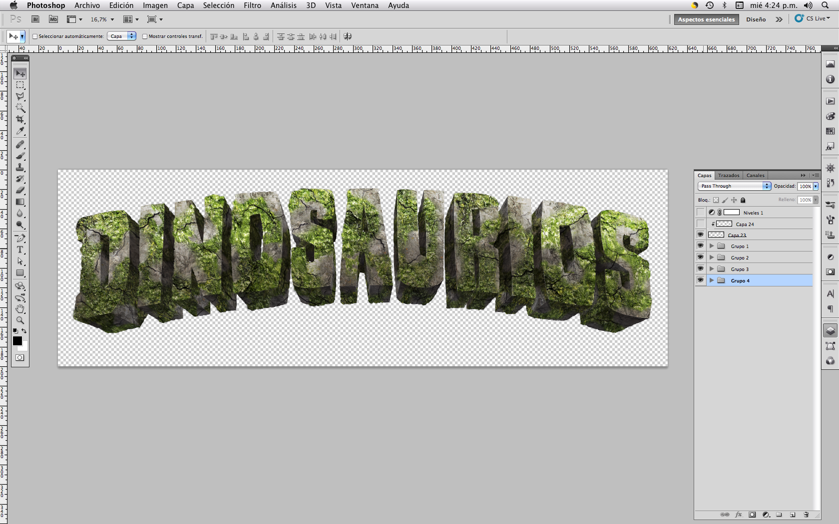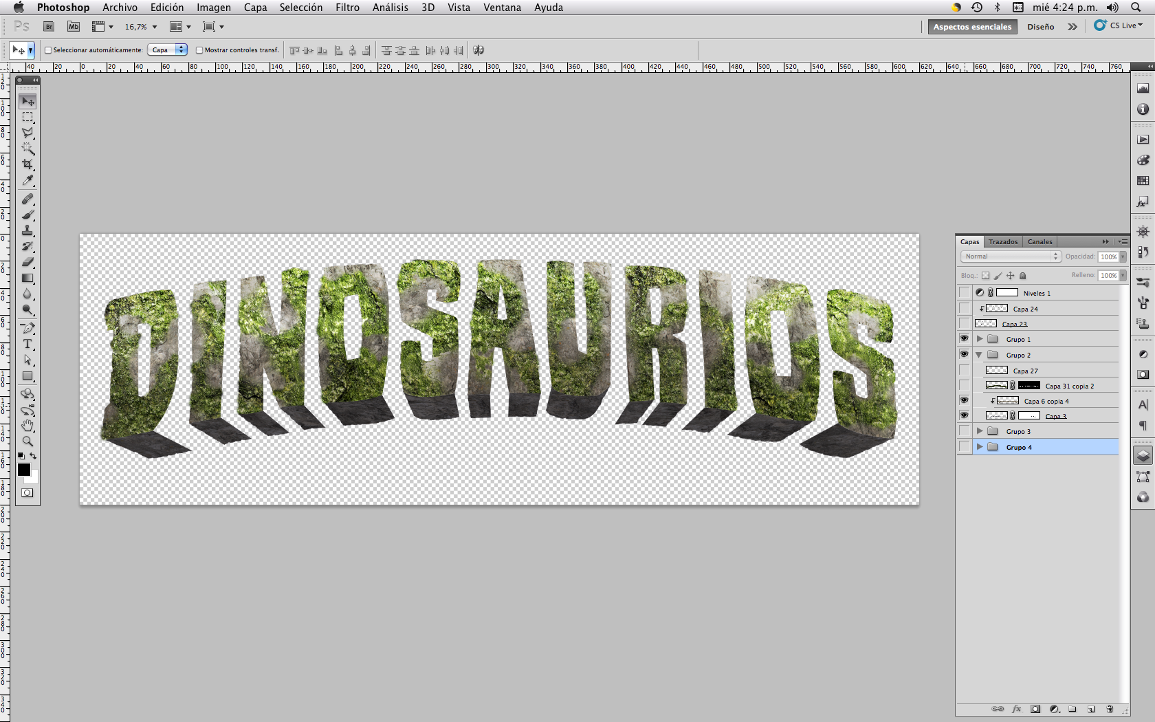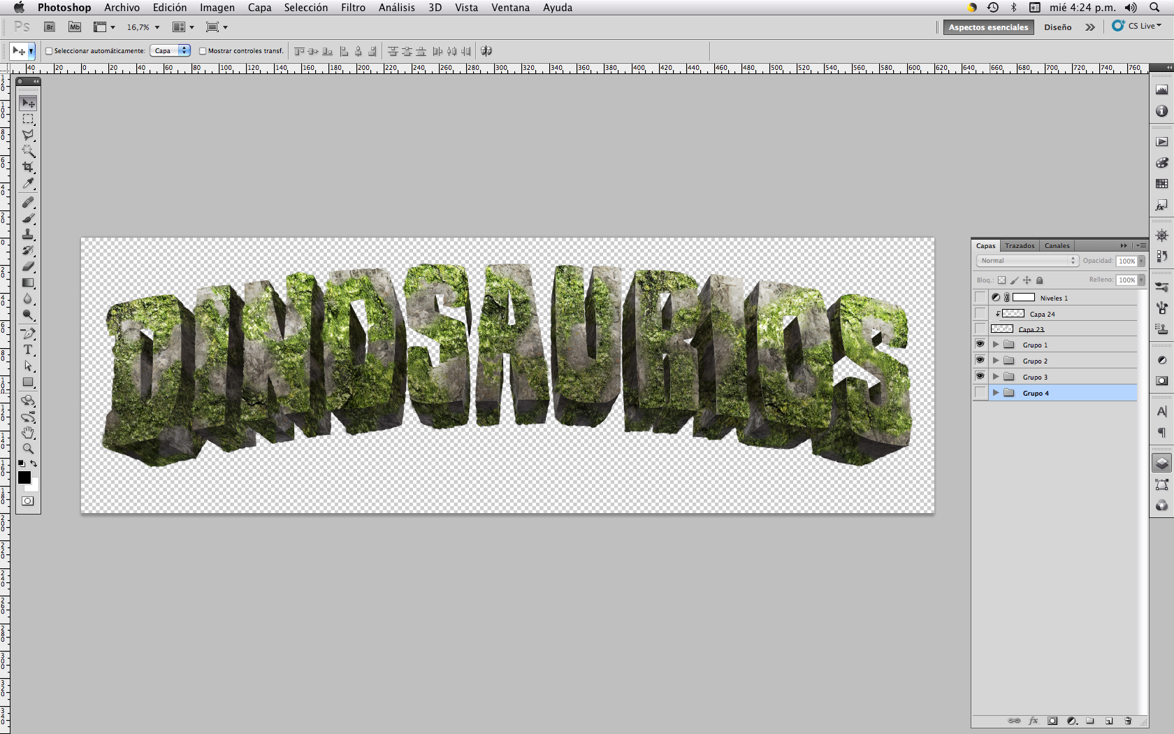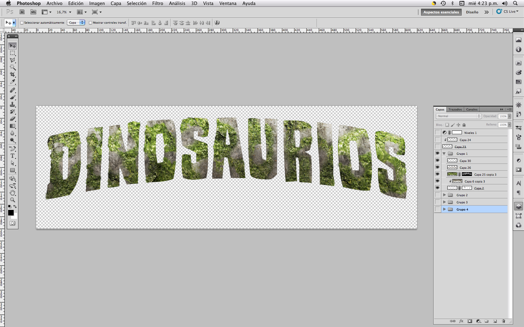 Step by step of the process to create a dinosaurs title